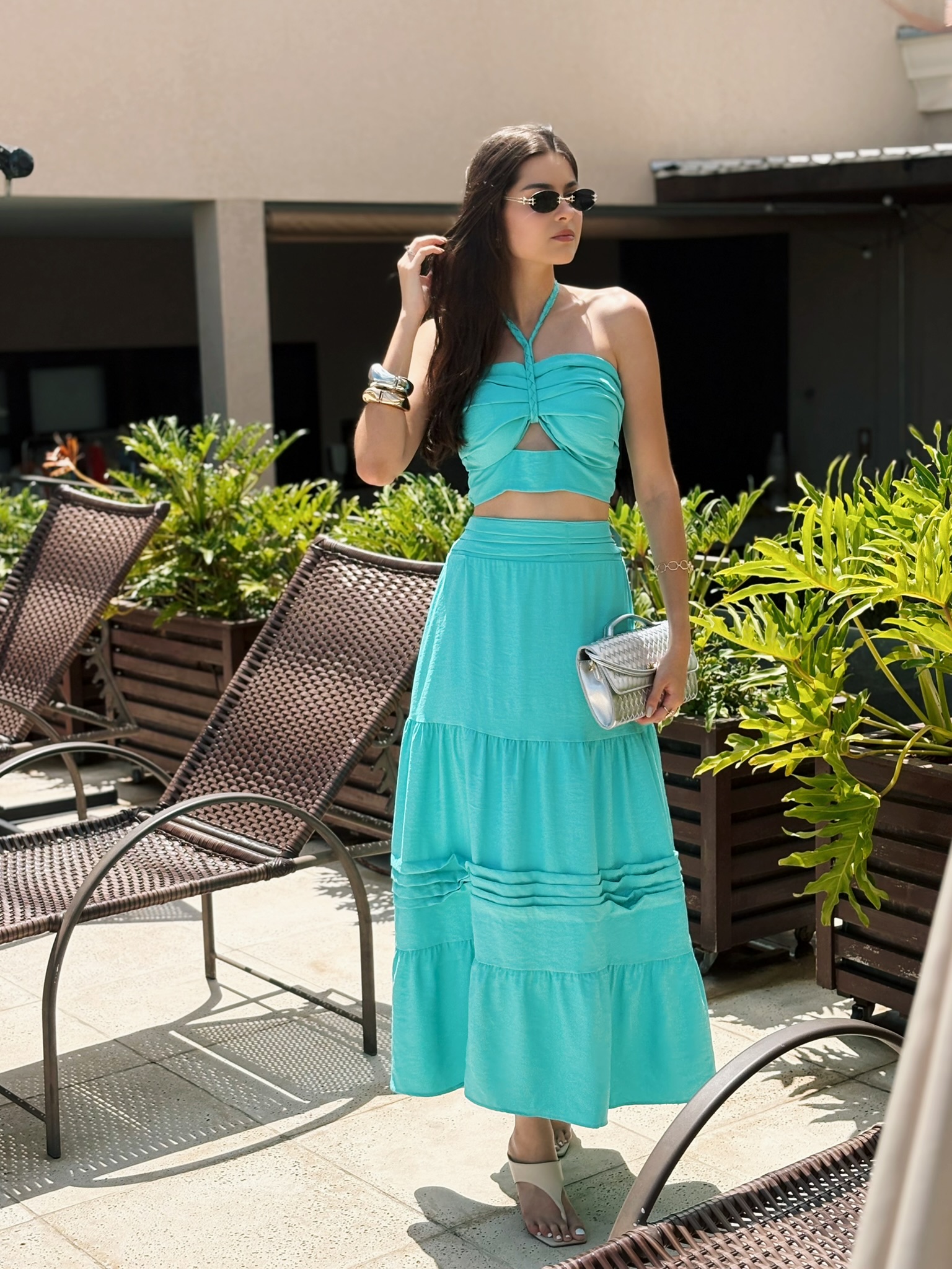 Desfrute da elegância e conforto com o Conjunto Saia Vitória, perfeito para quem busca estilo e frescor no look. Esta peça feminina apresenta um design moderno com saia longa rodada e cropped combinado, feito em tecido leve e respirável que garante conforto durante o uso. Ideal para ocasiões informais ou momentos especiais, o conjunto valoriza a silhueta com seu caimento fluido. A saia possui cintura alta com elástico que se ajusta bem, e o cropped tem detalhes que realçam o visual sem perder a delicadeza.